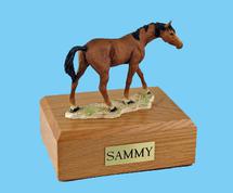 Our most popular urn is the Figurine Urn, made from solid hardwood lumber, this urn is available in Maple (light), Oak (medium), or Walnut (Dark). This urn offers each client the choice of over 700 different purebred dogs, cats, horses, or other animal figurines which we attach to the top of each urn. Every figurine is made from a mixture of alabaster (ground sea-shell) and hard resins and then hand-painted for a realistic appearance.